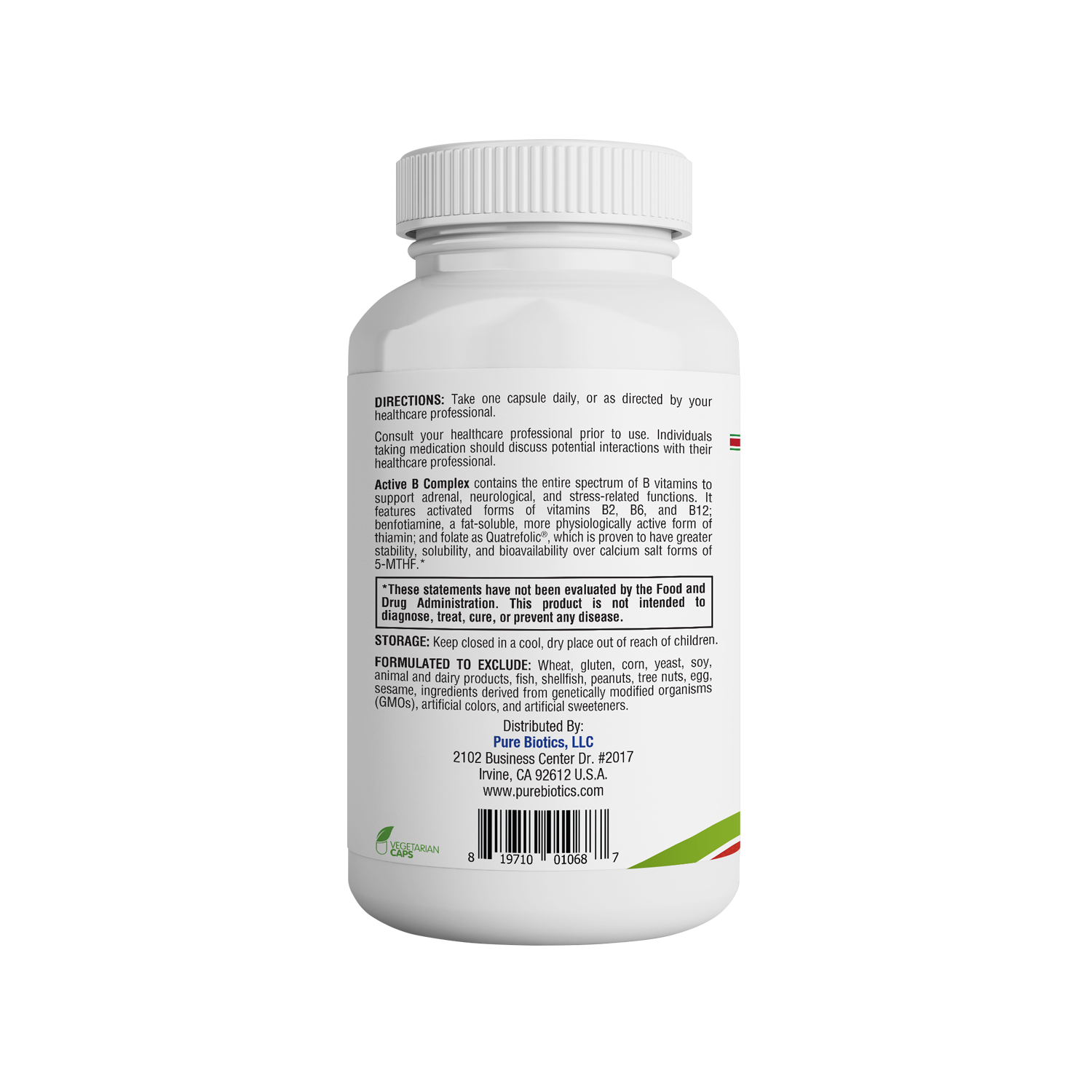 Active B Complex is a full-spectrum B-vitamin formula complexed with choline and benfotiamine that features premium vitamin forms selected for their biological activity profiles. This formula supports adrenal and neurological health and provides important cofactors for metabolic and stress-related biochemical pathways.*